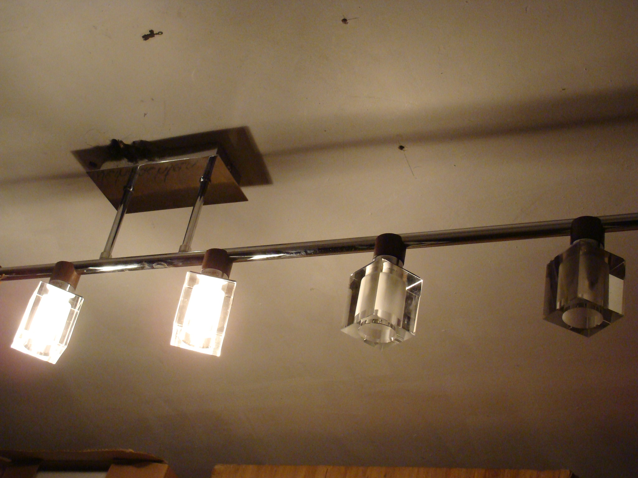 Im ehemaligen Kinderzimmer ist inzwischen die „Deckenheizung“ durch eine sichere Deckenlampe – ein Geschenk von Karin und Georg, DANKE! – ersetzt worden. Tote Schalter sind dem Energiestrom zugeführt…
